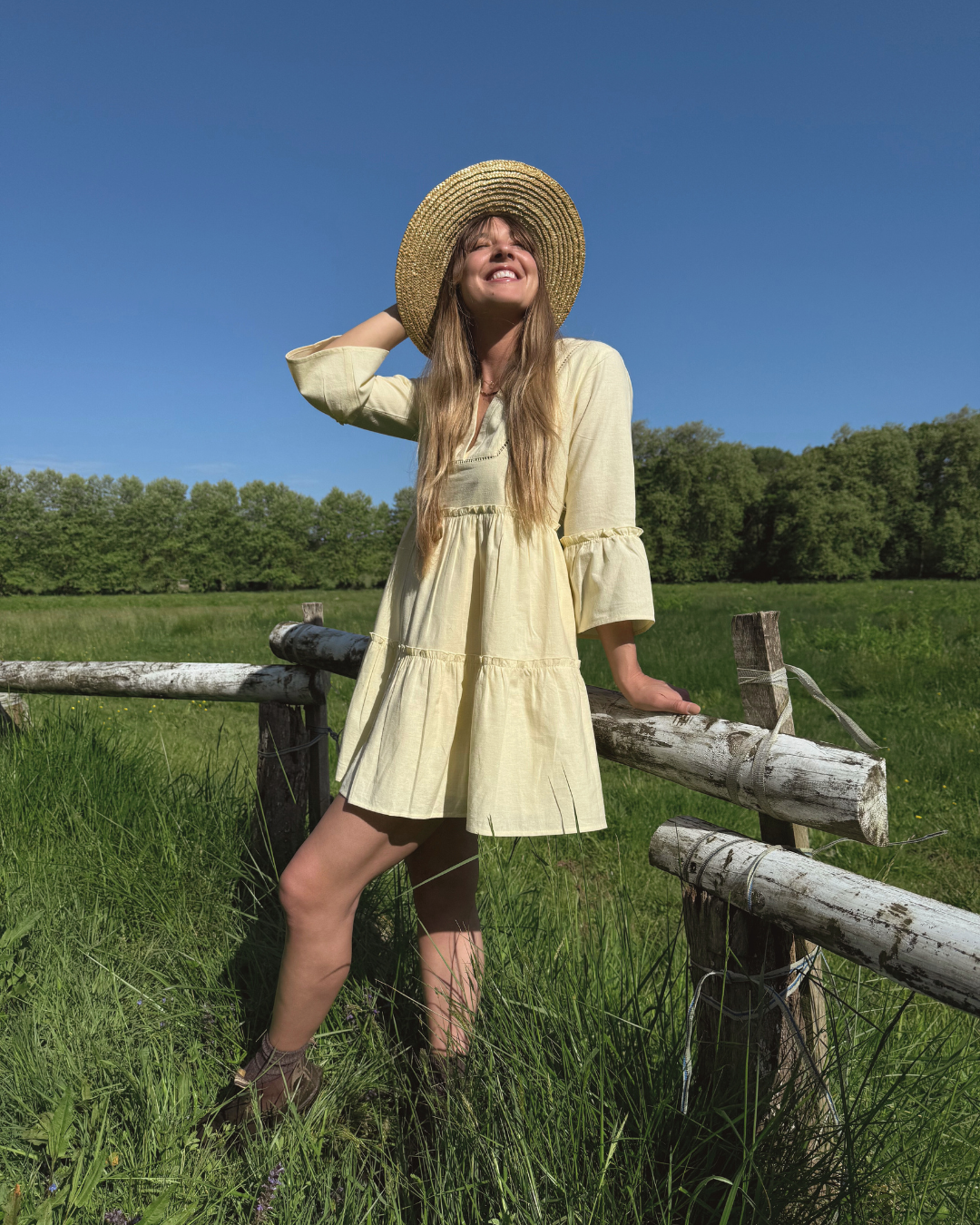 Confectionnée en coton et lin naturels, elle vous garde au frais et à l'aise toute la journée.