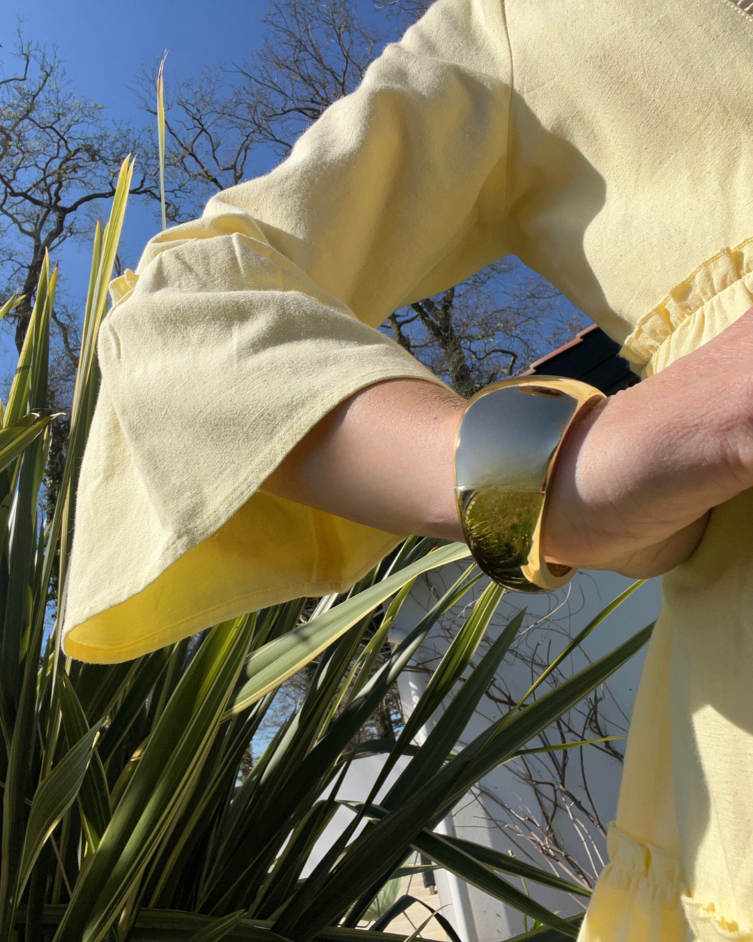 Our Buttercup radiates joy with its bright, cheerful hue & flirty ruffle layers.
